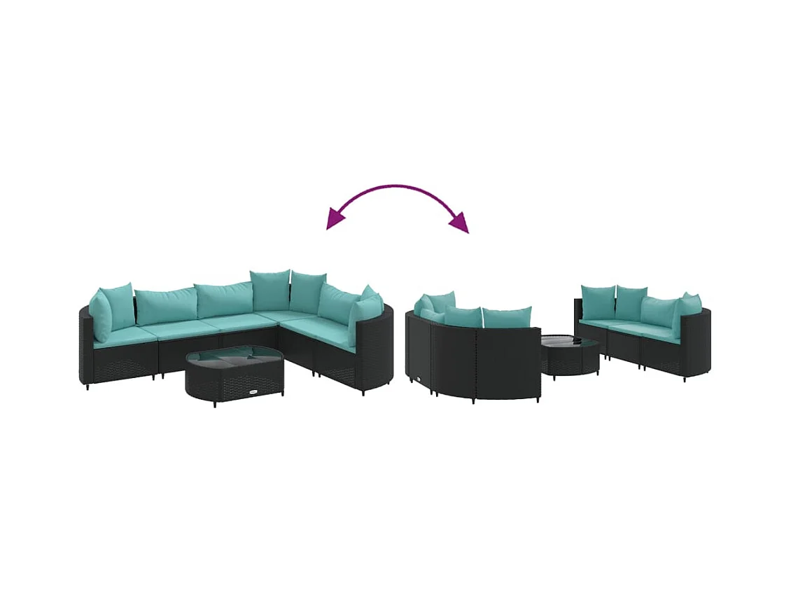Salon de jardin 10 pcs avec coussins noir résine tressée