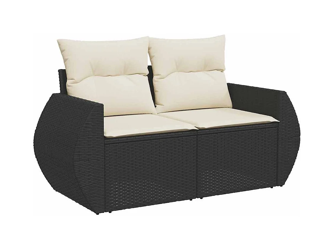 Salon de jardin 7 pcs avec coussins noir résine tressée