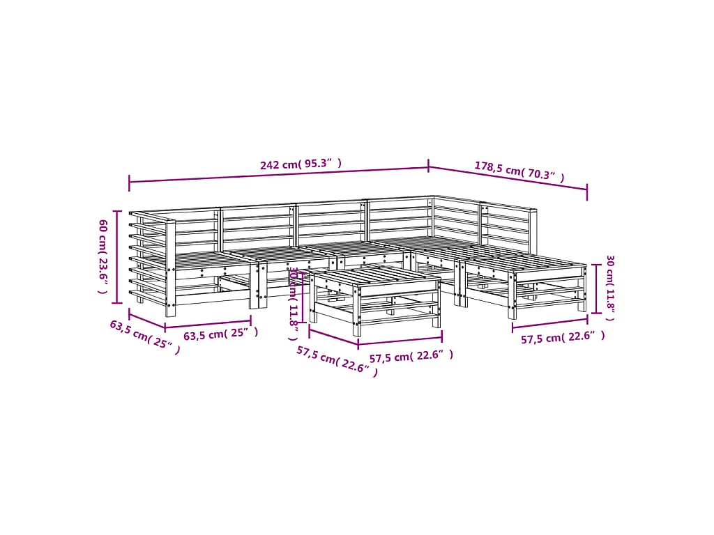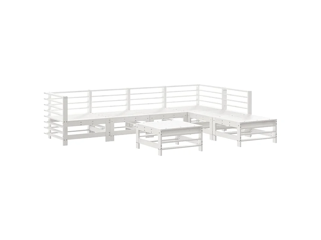 Salon de jardin 7 pcs Blanc Bois de pin massif