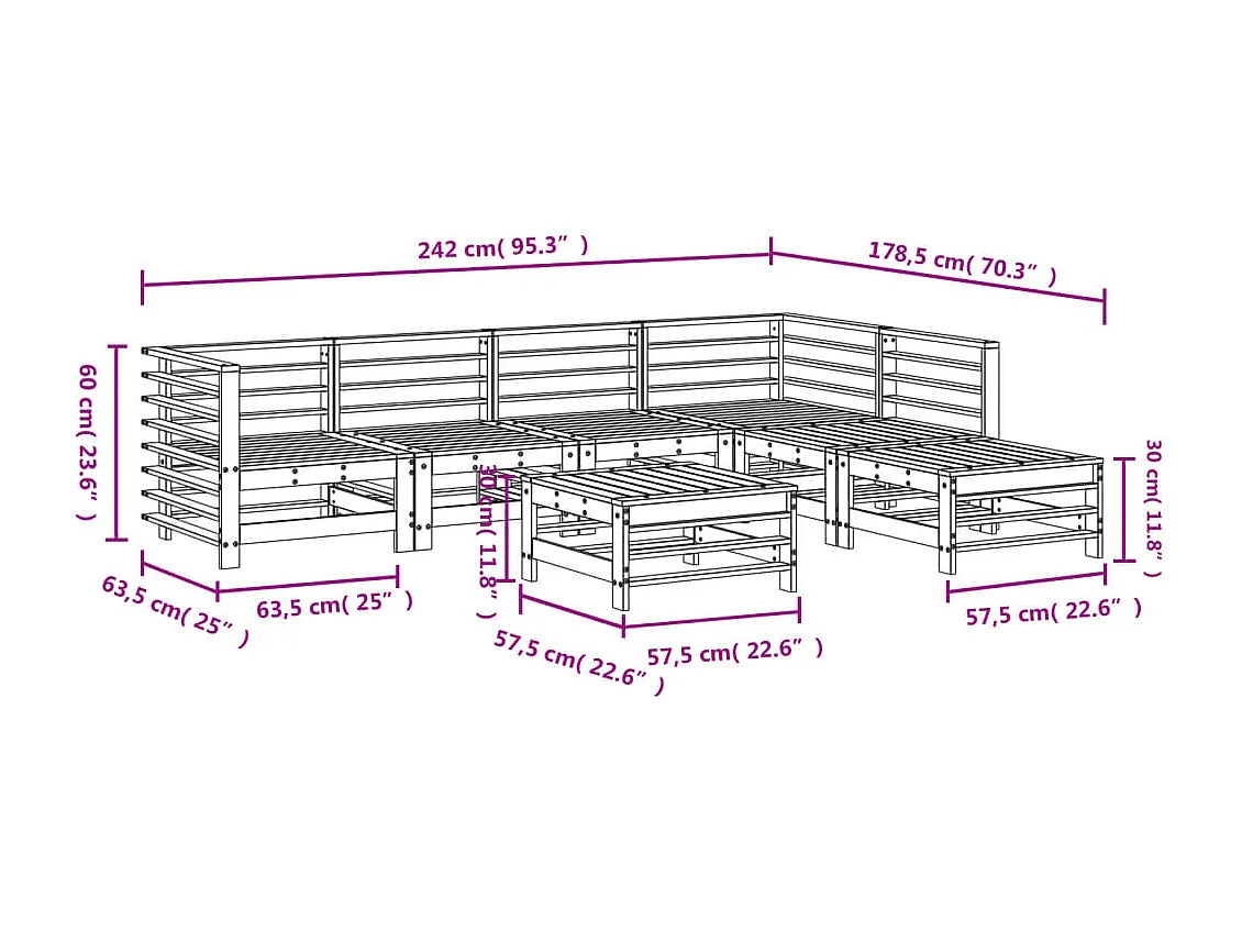 Salon de jardin 7 pcs Bois de pin massif