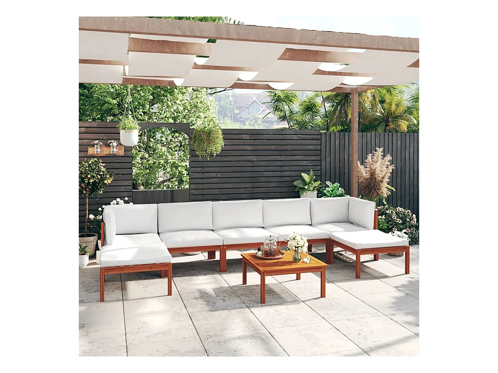 Salon de jardin 8 pièces avec coussins Crème 63 x 63 cm