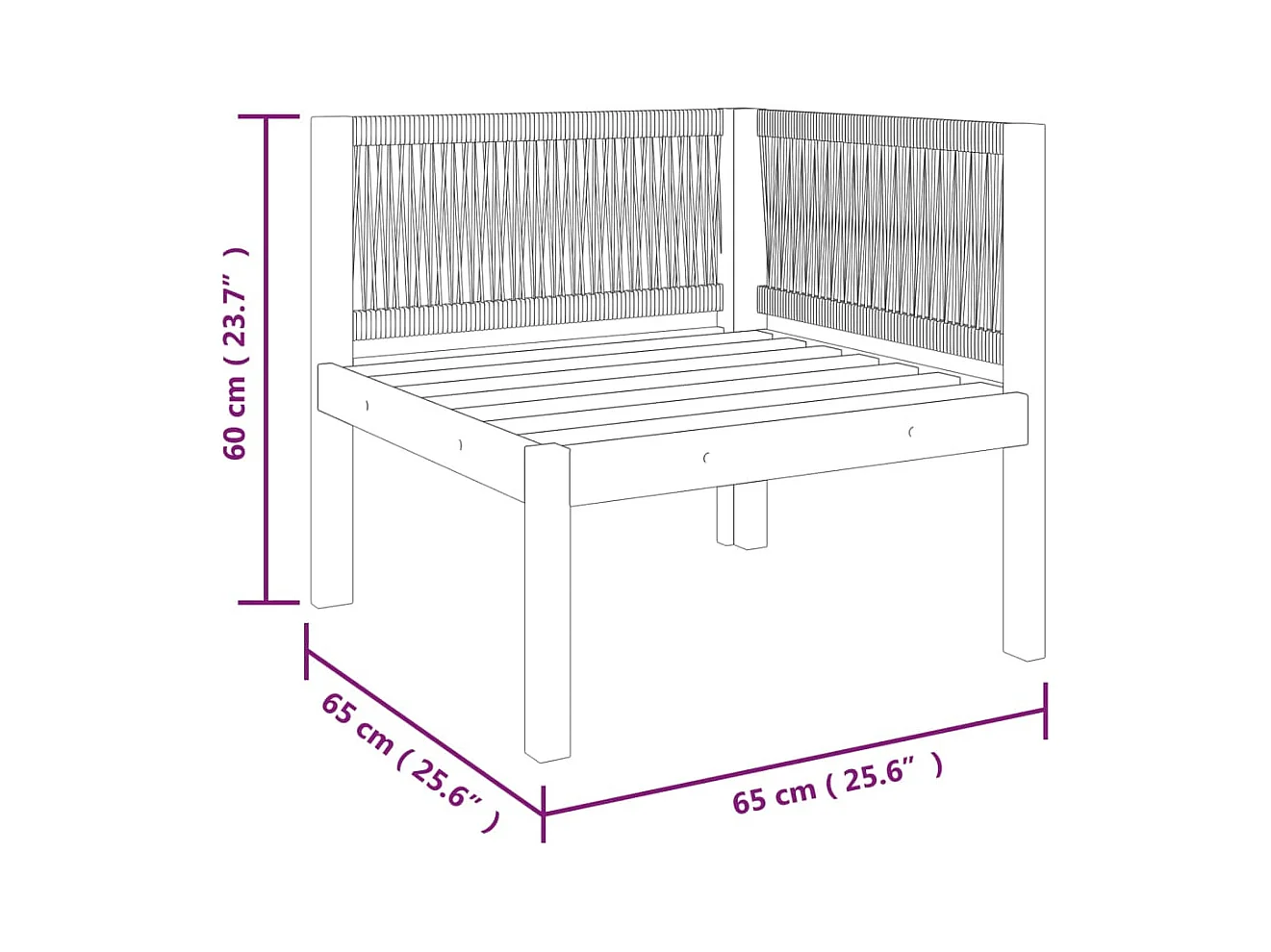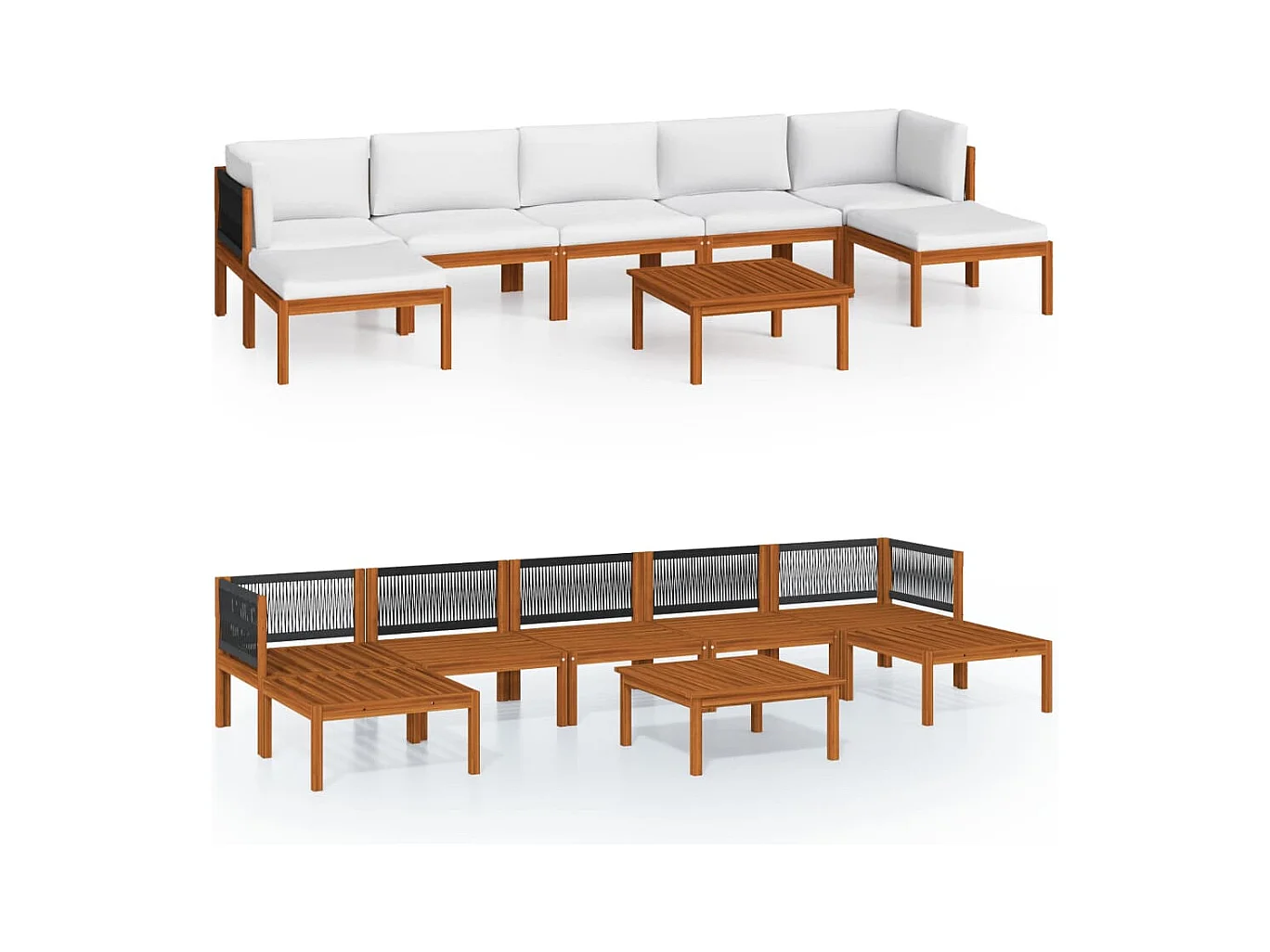 Salon de jardin 5 pièces avec coussins, bois d'acacia crème et corde