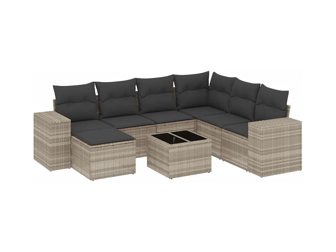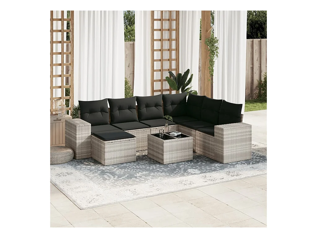 Salon de jardin 8 pcs avec coussins gris clair résine tressée
