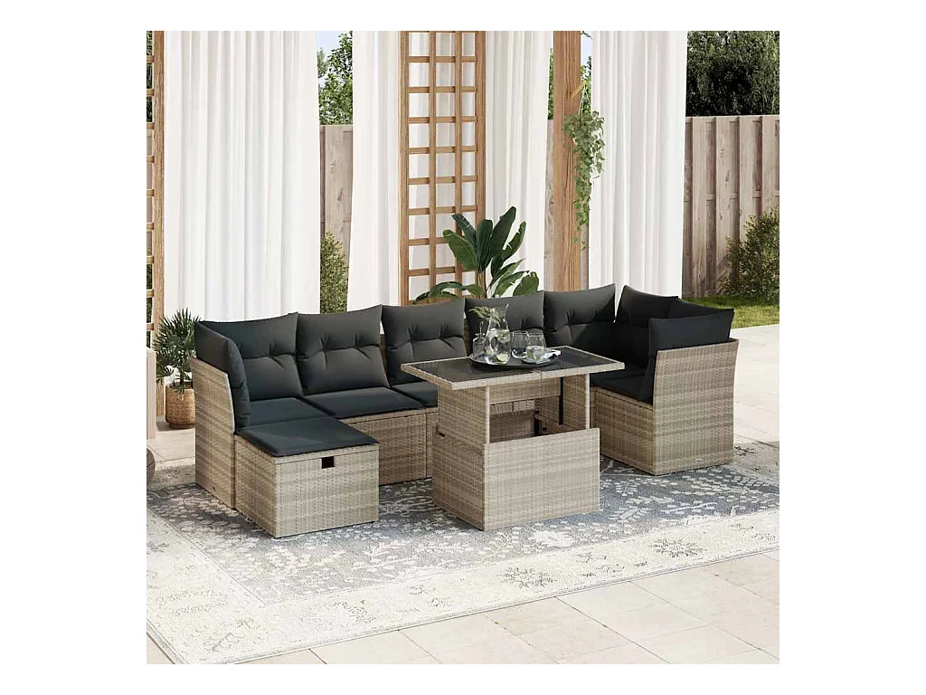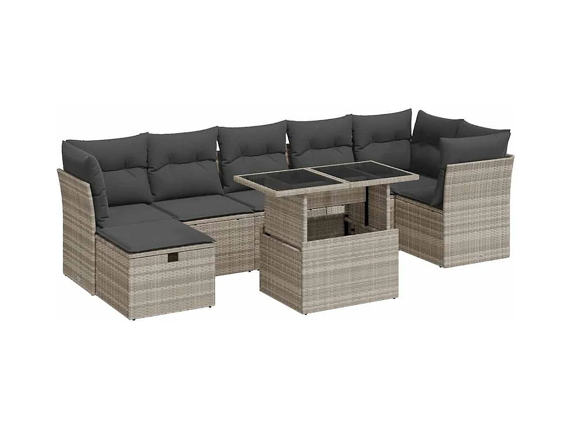 Salon de jardin 8 pcs avec coussins gris clair résine tressée