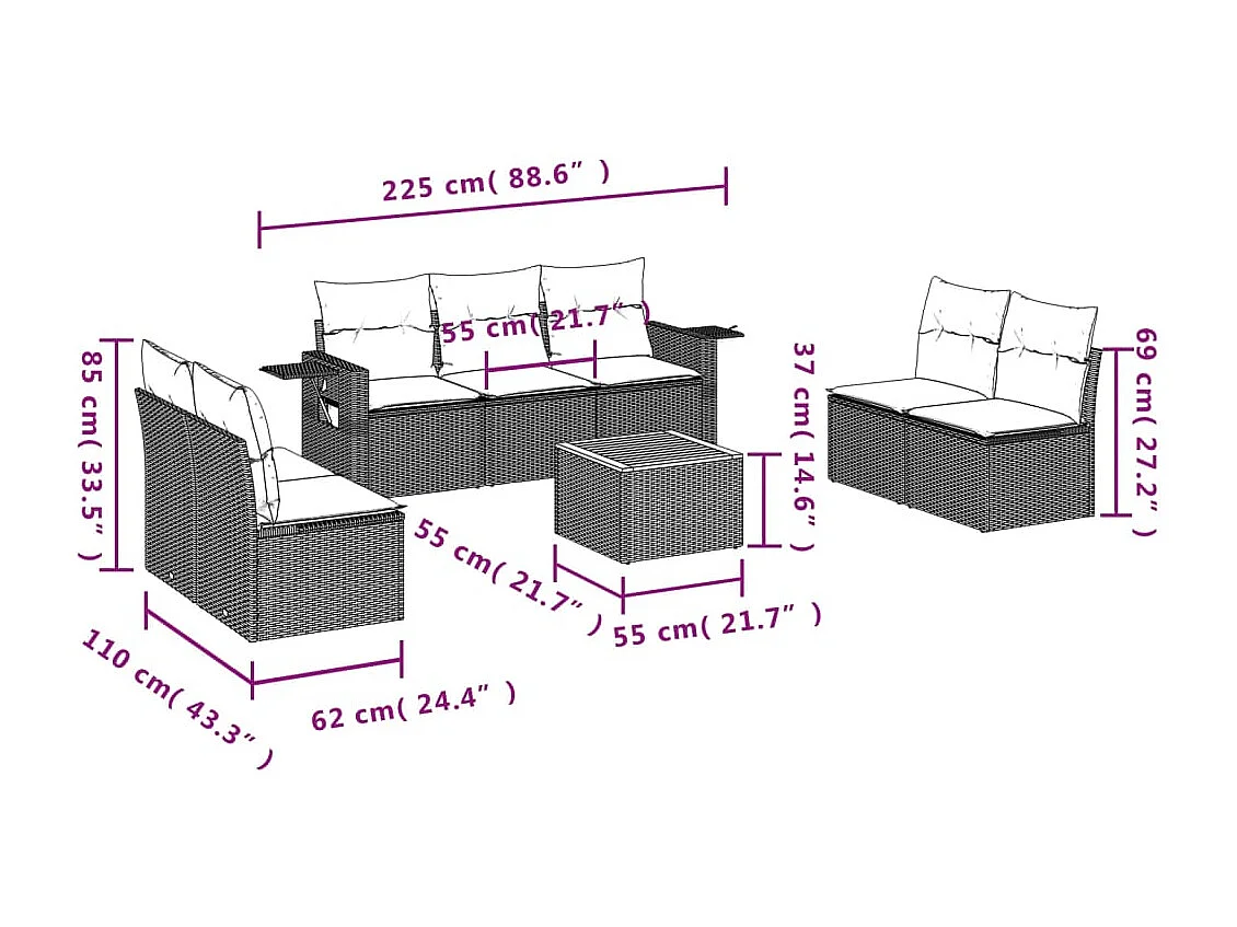 Salon de jardin 8 pcs avec coussins gris résine tressée