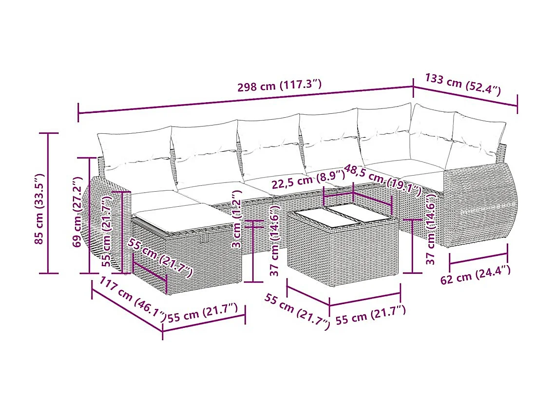 Salon complet de jardin Canapé 2 places et 2 fauteuils