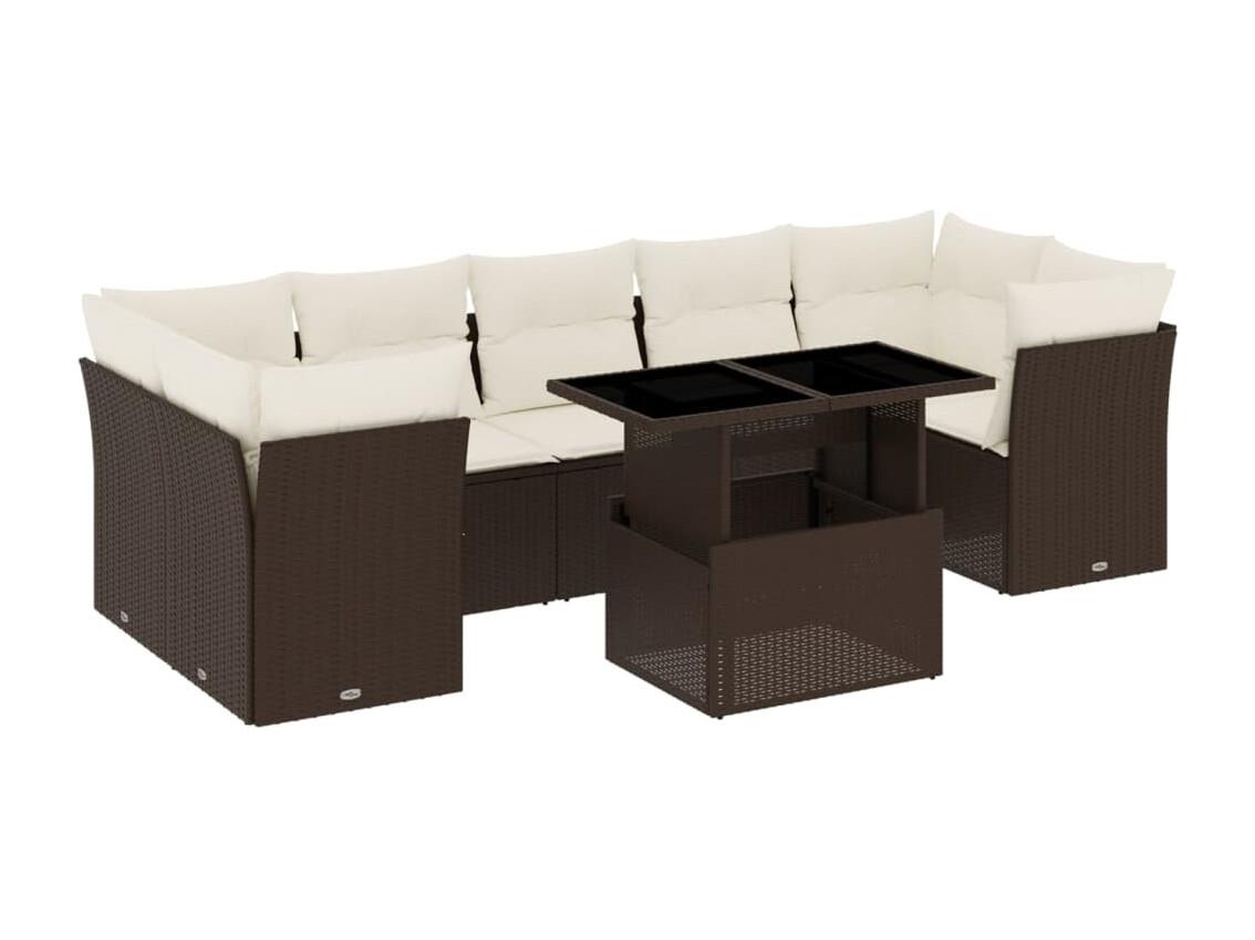 Salon de jardin 8 pcs avec coussins marron résine tressée