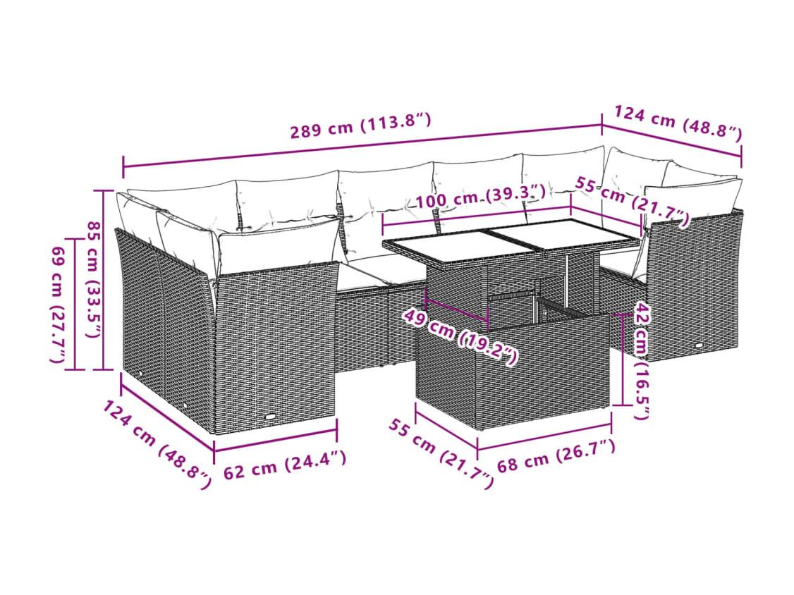 Salon de jardin avec coussins 9 pcs marron résine tressée