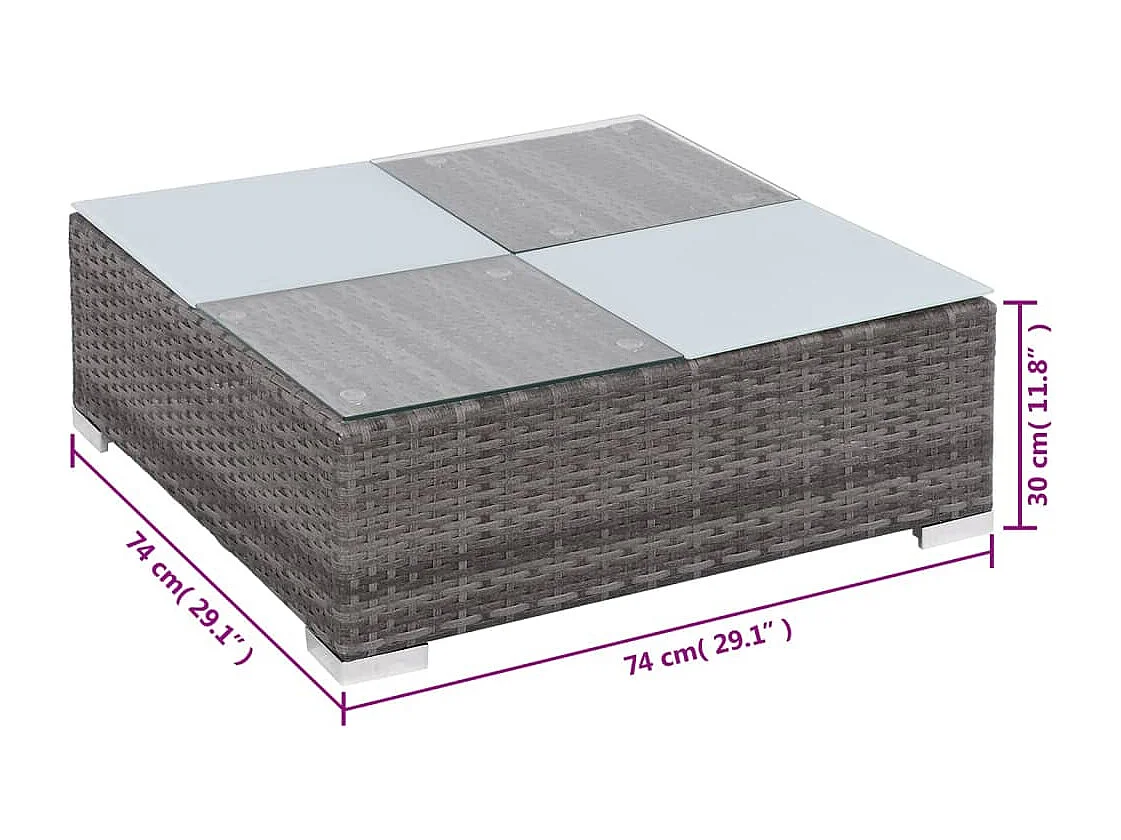 Salon de jardin 8 pcs avec coussins résine tressée gris