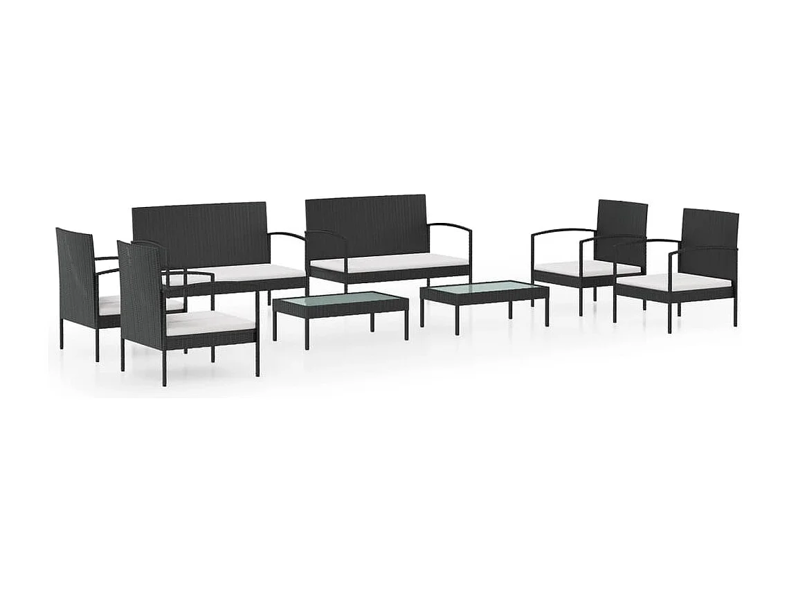 Salon de jardin 8 pcs avec coussins résine tressée noir