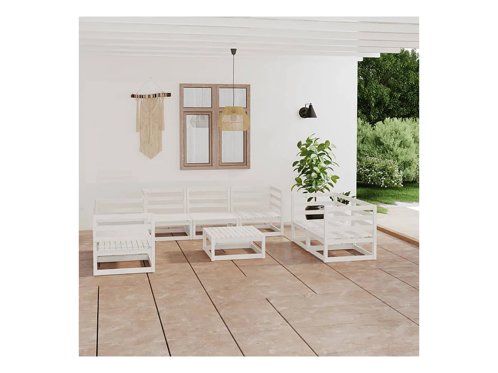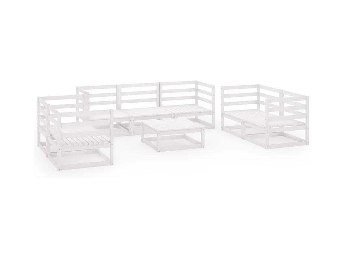 Salon de jardin 8 pcs Blanc Bois de pin massif