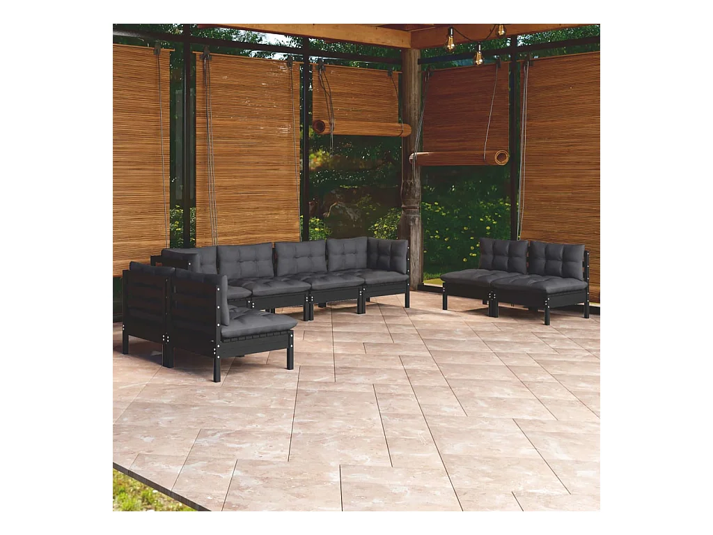 Salon de jardin 9 pcs avec coussins bois de pin massif