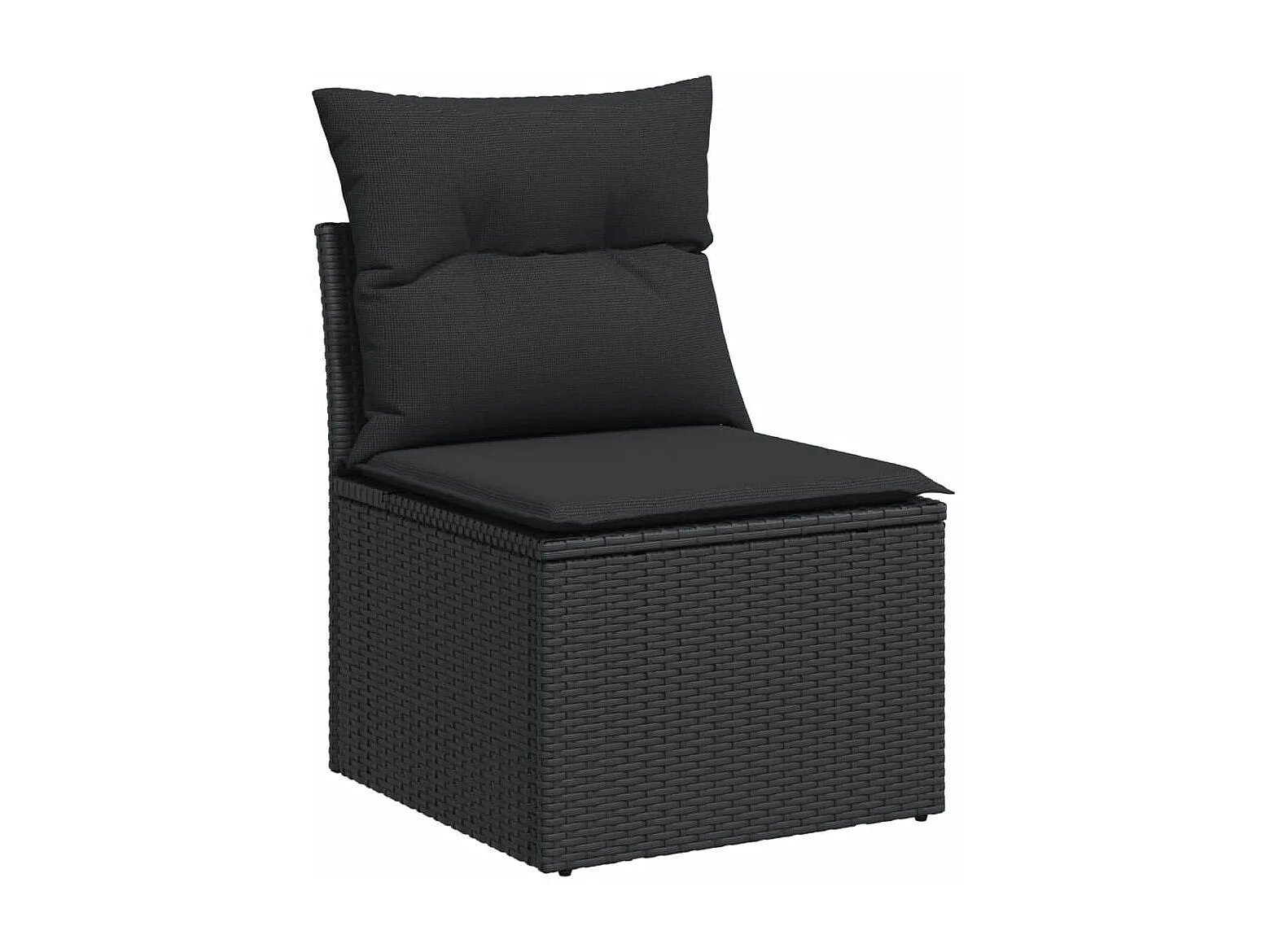 Salon de jardin 9 pcs avec coussins noir résine tressée