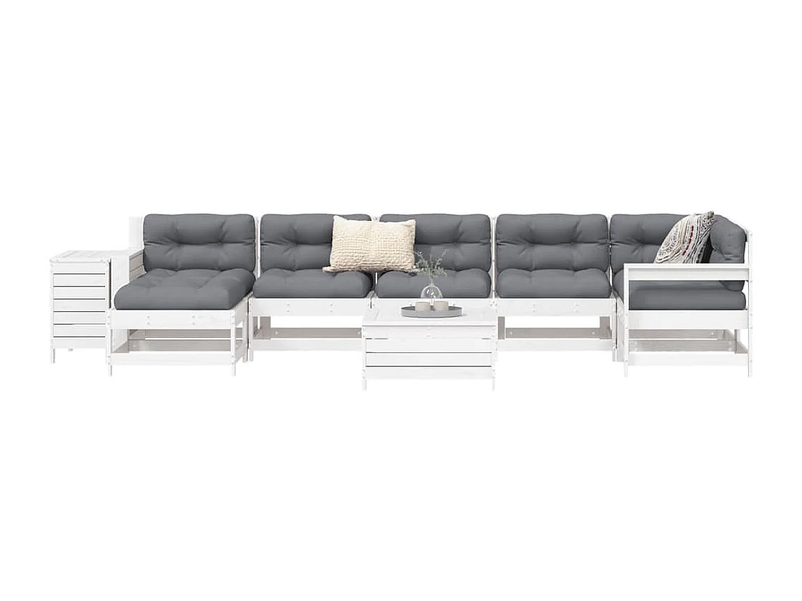 Salon de jardin 9 pcs blanc bois de pin massif