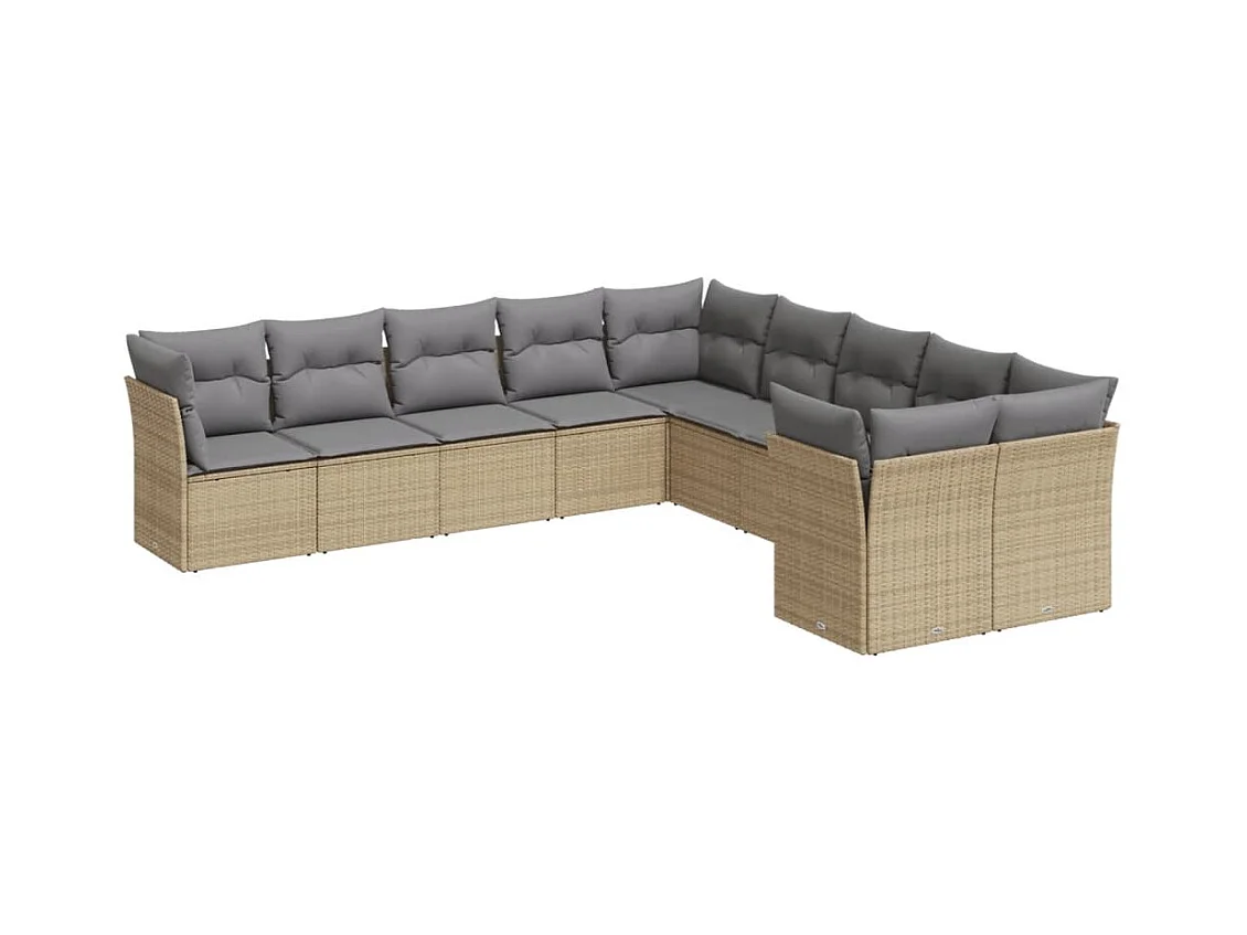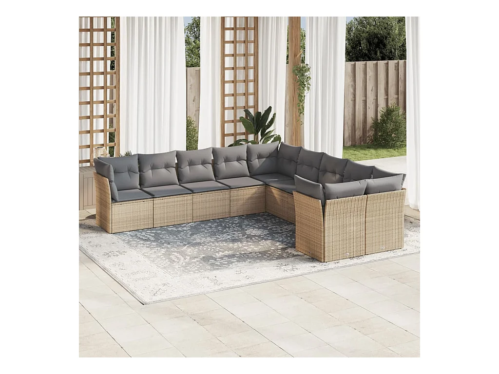 Salon de jardin avec coussins 10 pcs beige résine tressée