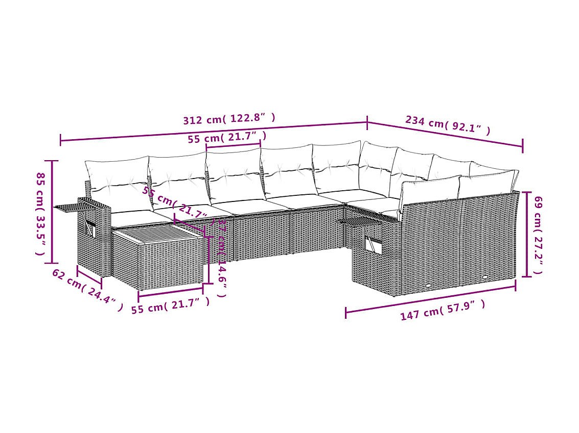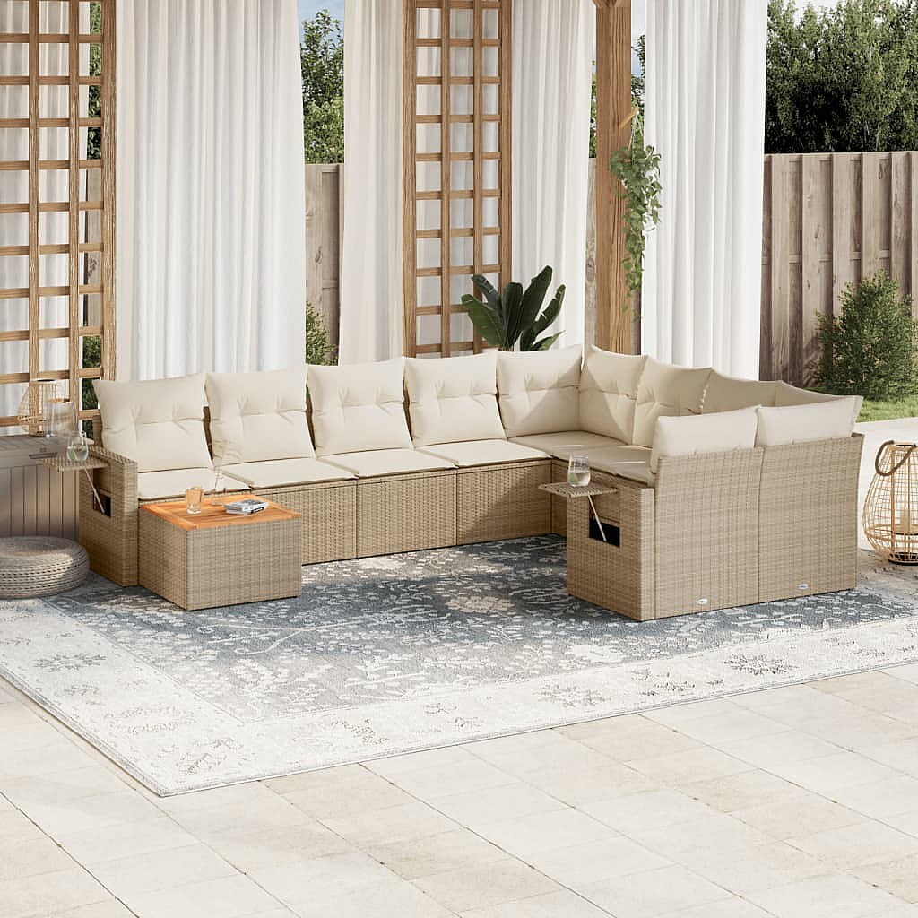 Salon de jardin avec coussins 10 pcs beige résine tressée