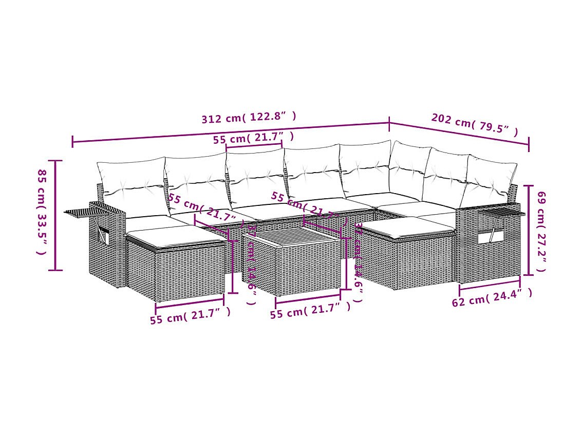 Salon complet de jardin Canapé 2 places et 2 fauteuils