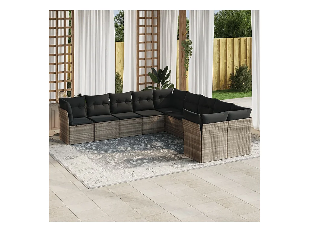 Salon de jardin avec coussins 10 pcs gris résine tressée