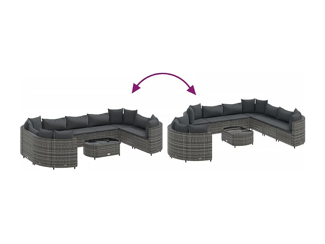 Salon de jardin avec coussins 10 pcs gris résine tressée
