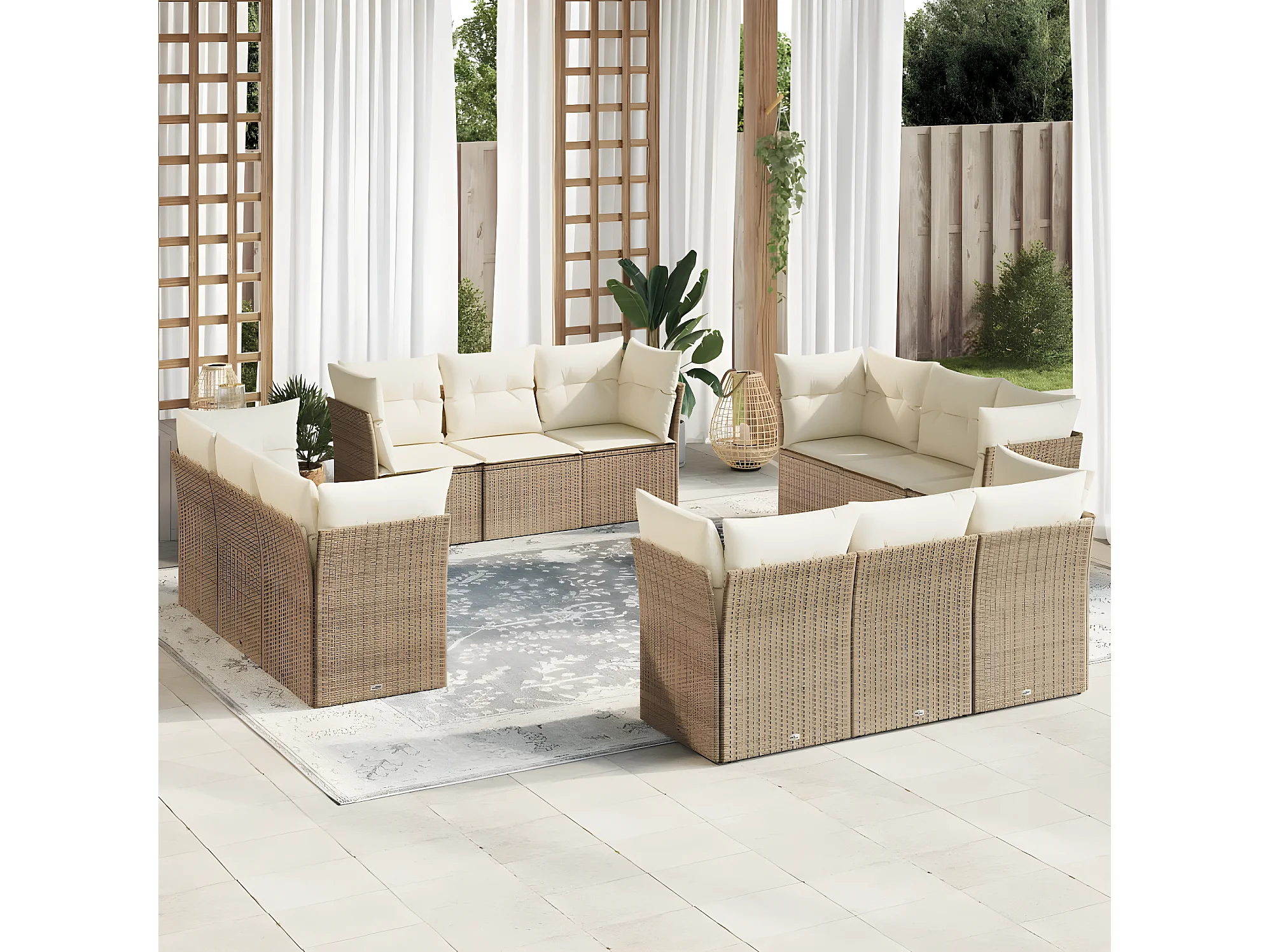 Salon de jardin avec coussins 12 pcs beige résine tressée