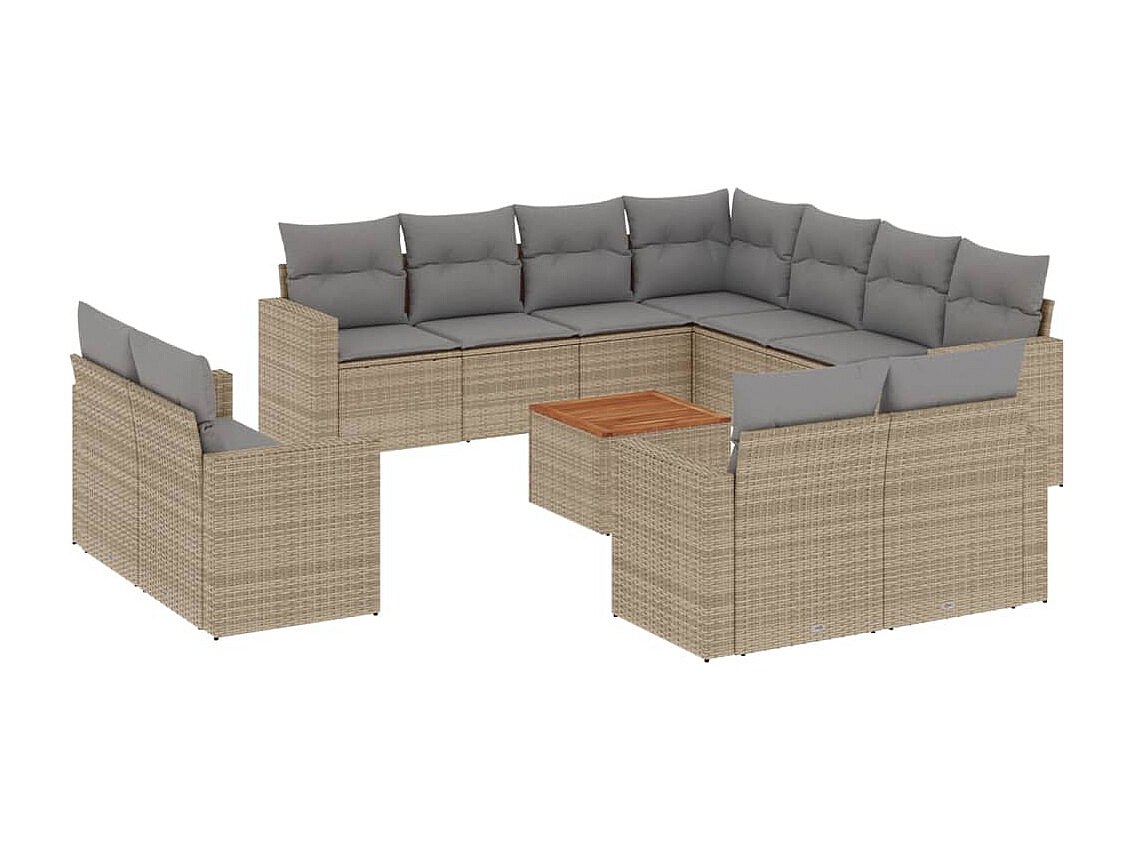 Salon de jardin avec coussins 12 pcs beige résine tressée