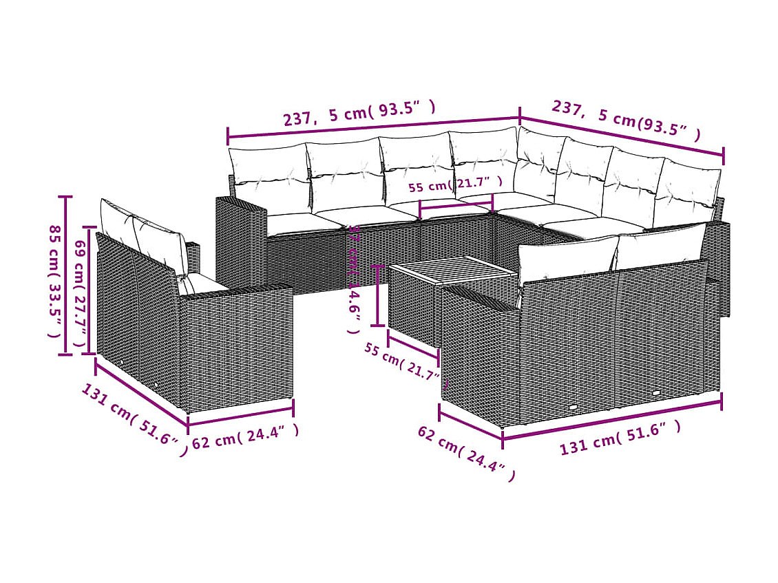 Salon de jardin avec coussins 10 pcs beige résine tressée
