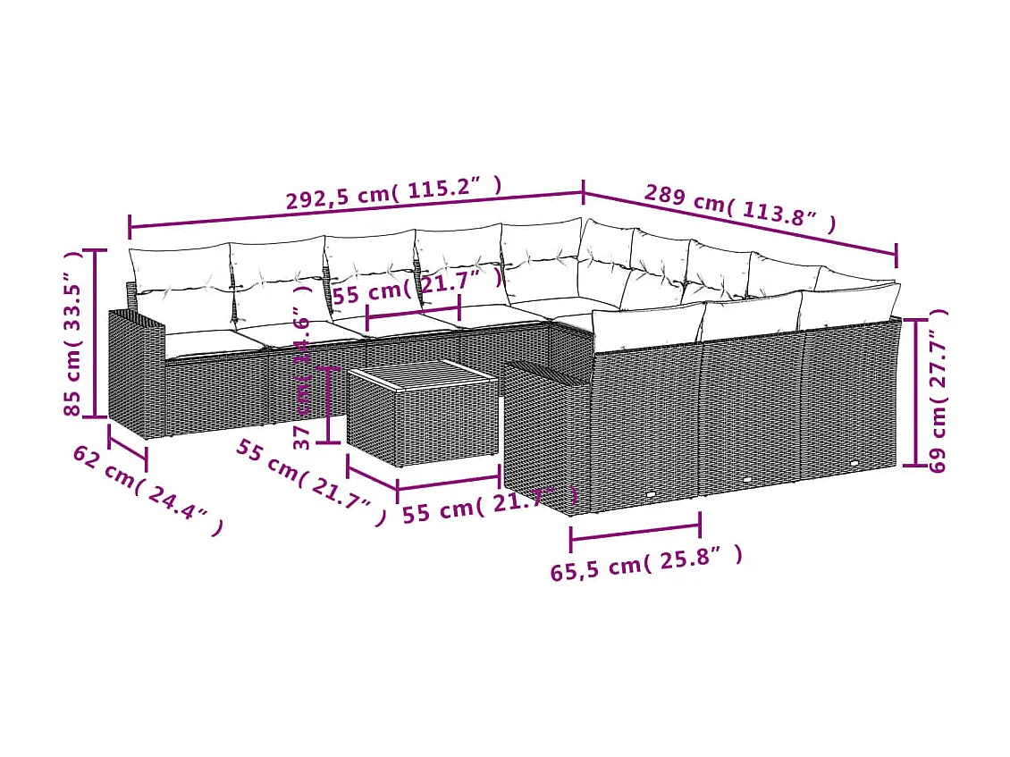 Salon de jardin avec coussins 9 pcs beige résine tressée