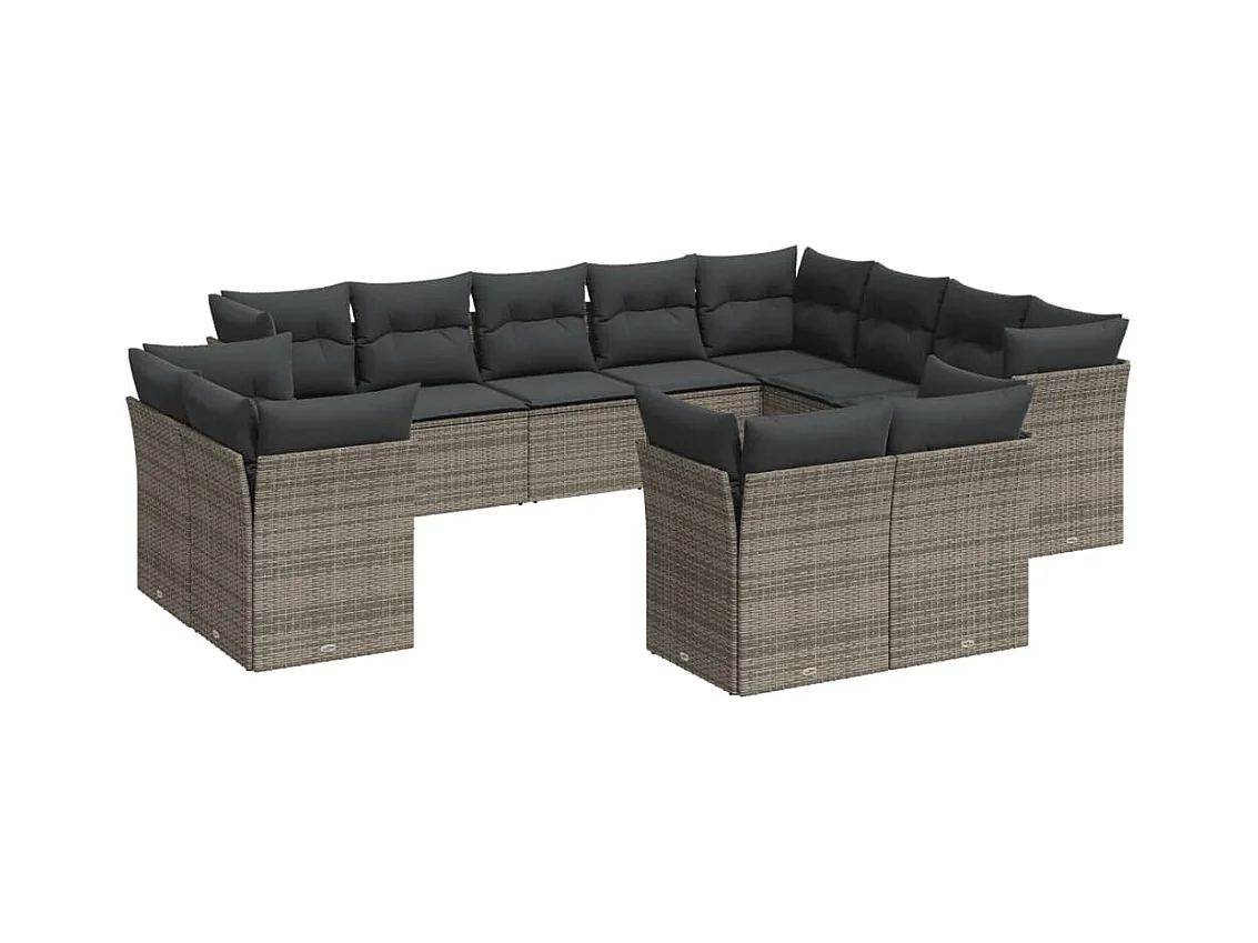Salon de jardin avec coussins 12 pcs gris résine tressée