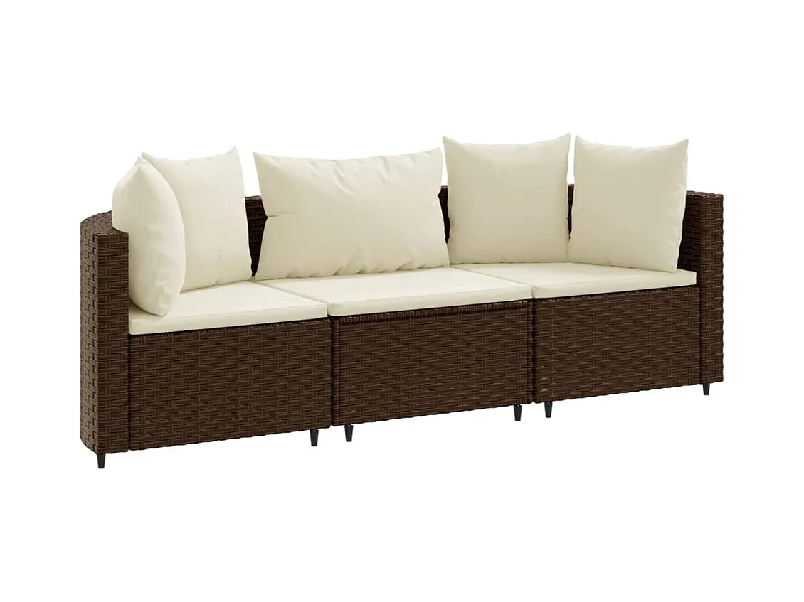 Salon de jardin avec coussins 3 pcs marron résine tressée