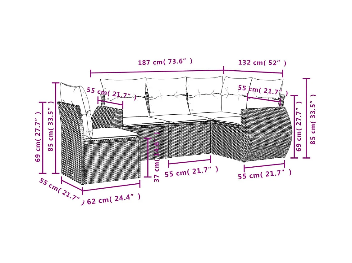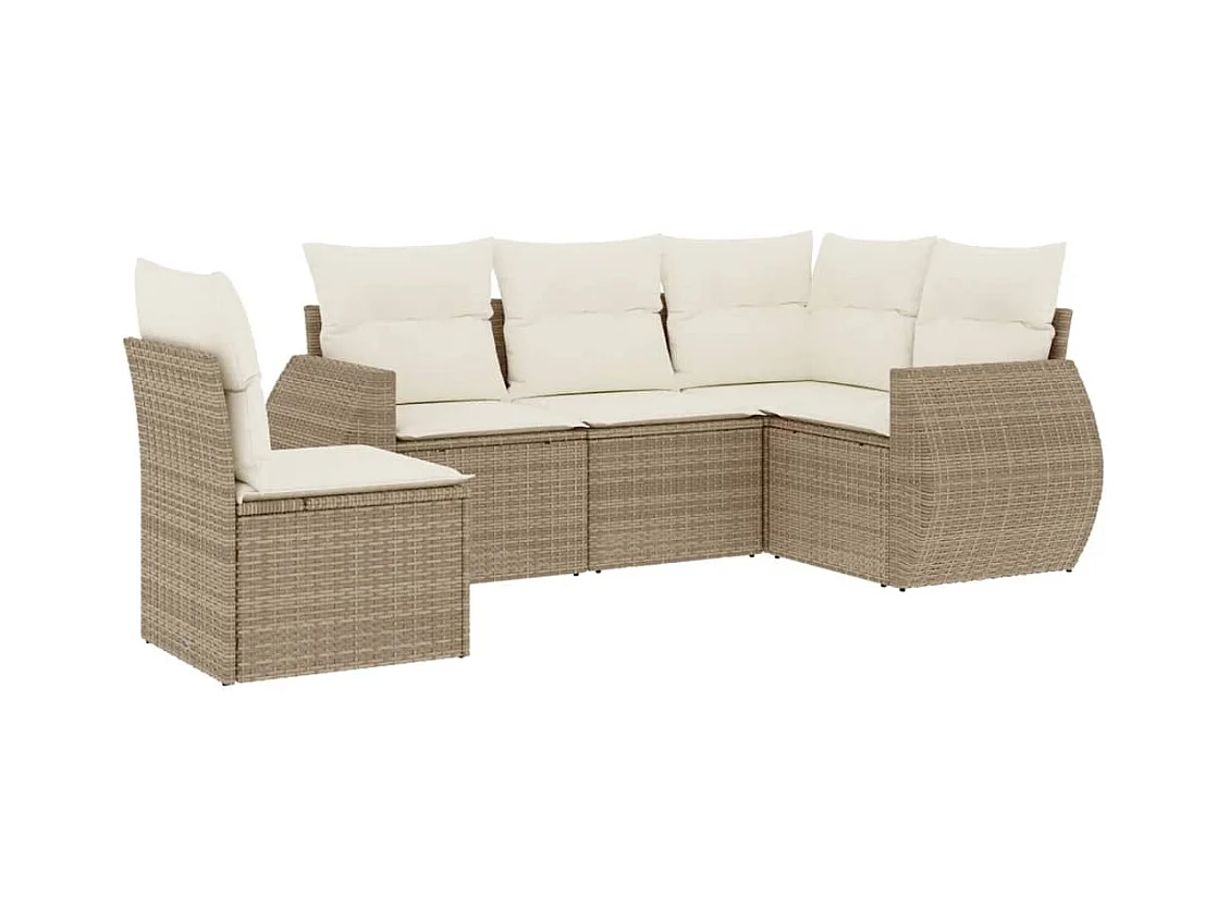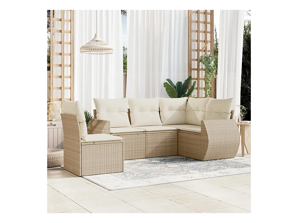 Salon de jardin avec coussins 5 pcs beige résine tressée