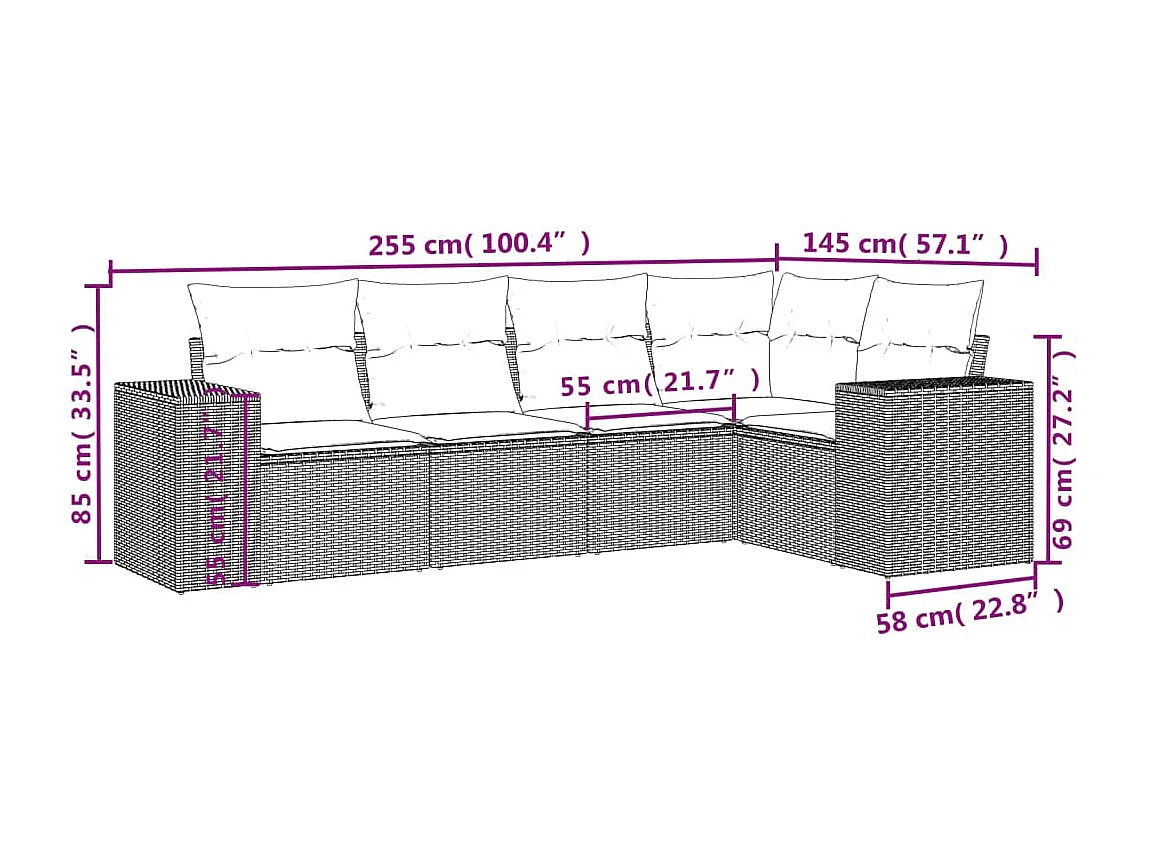 Salon de jardin avec coussins 5 pcs beige résine tressée