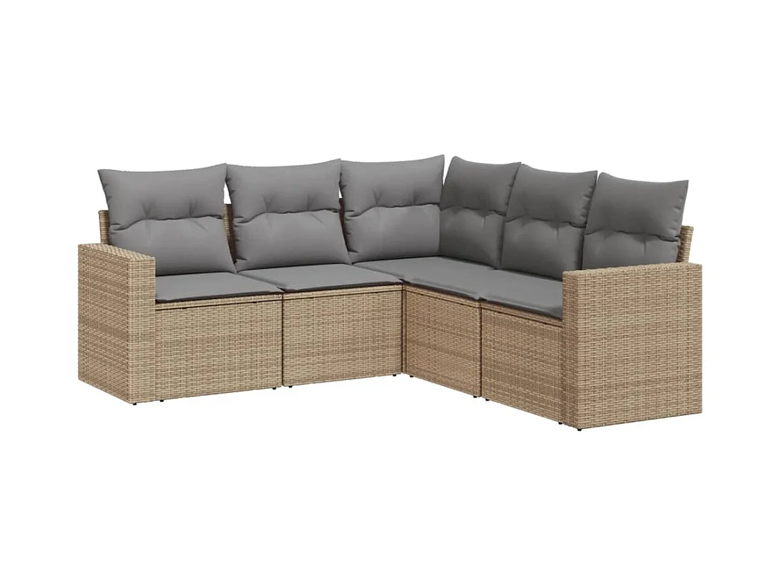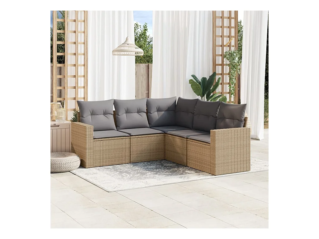 Salon de jardin avec coussins 5 pcs beige résine tressée