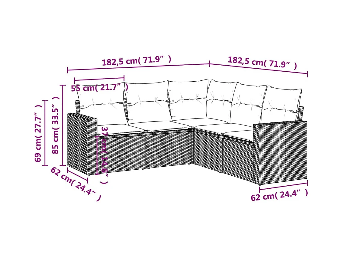 Salon de jardin 4 pcs avec coussins gris résine tressée