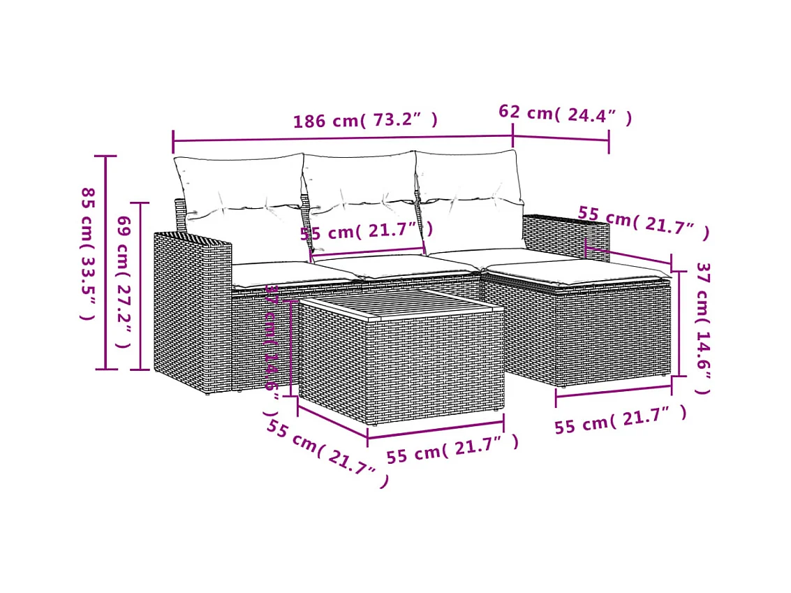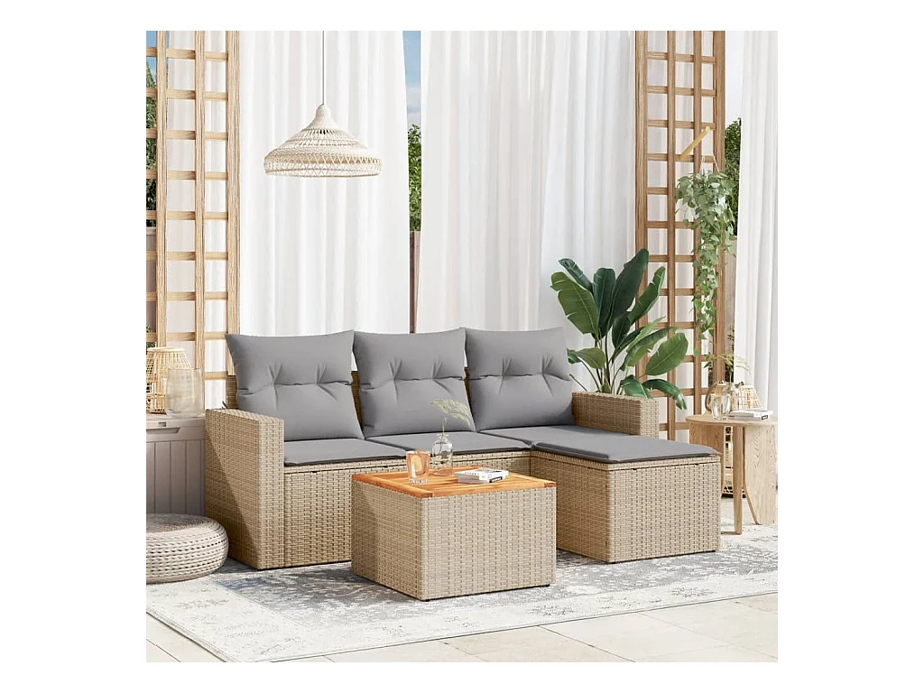 Salon de jardin avec coussins 5 pcs beige résine tressée