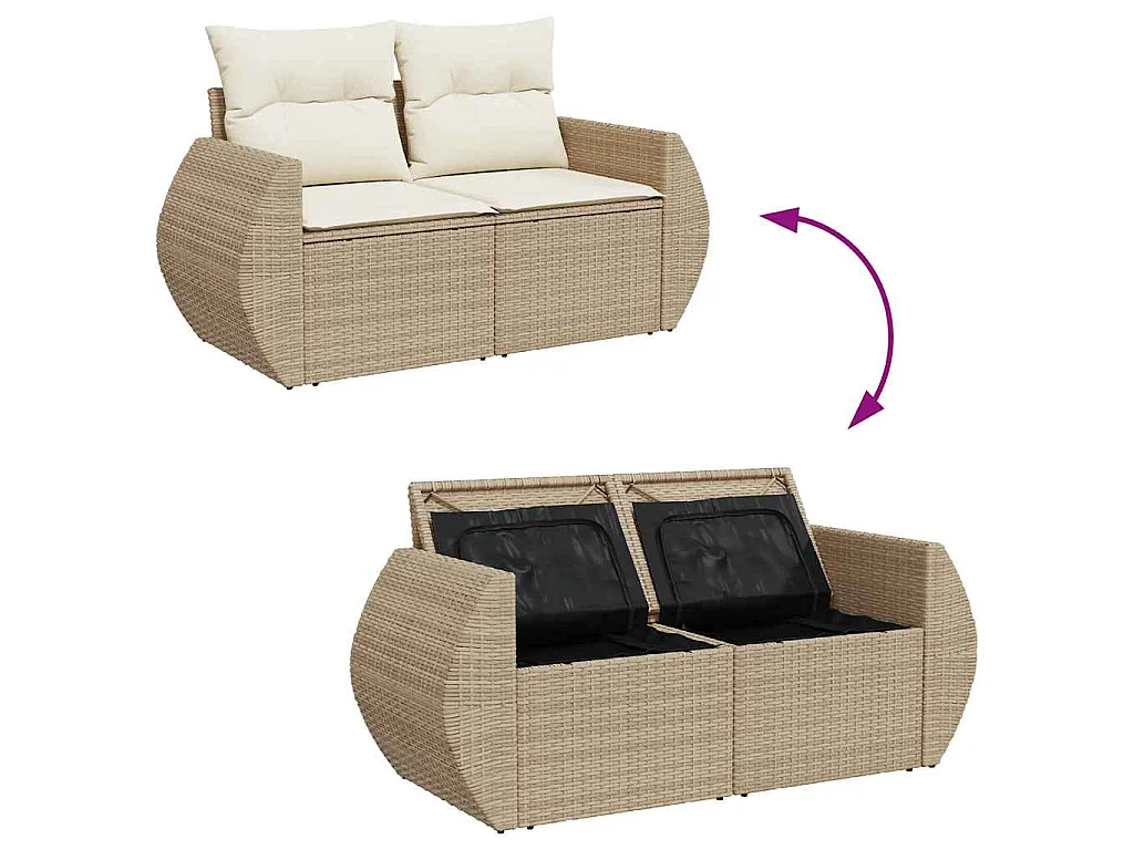 Salon de jardin avec coussins 5 pcs beige résine tressée