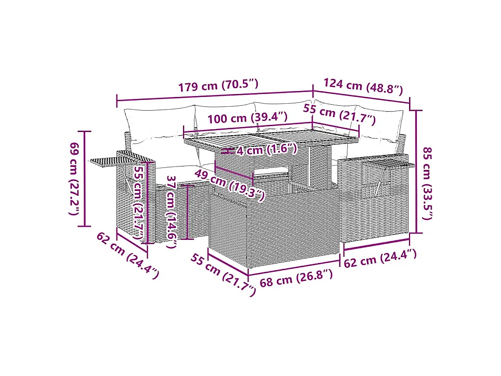 Salon complet de jardin Canapé 2 places et 2 fauteuils