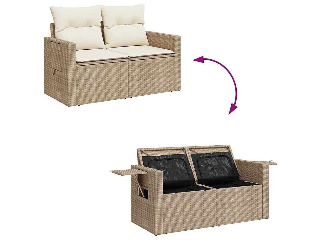 Salon de jardin avec coussins 5 pcs beige résine tressée