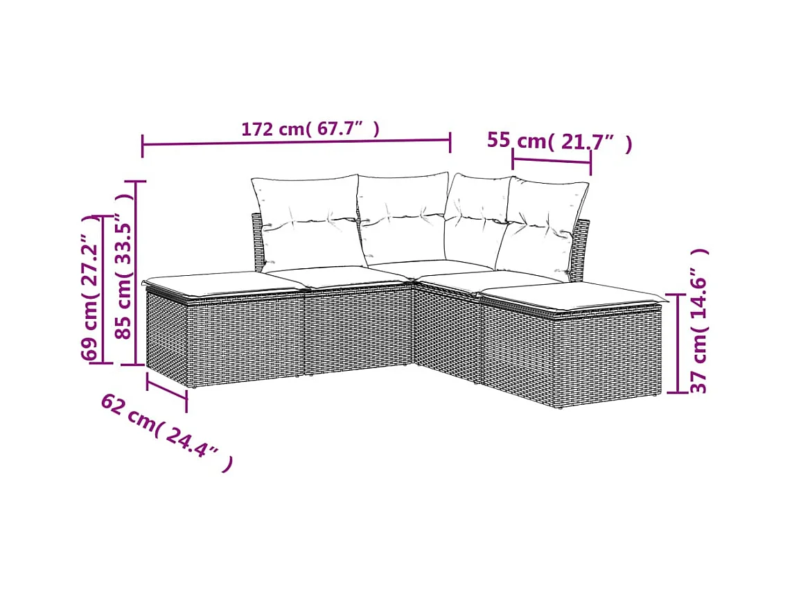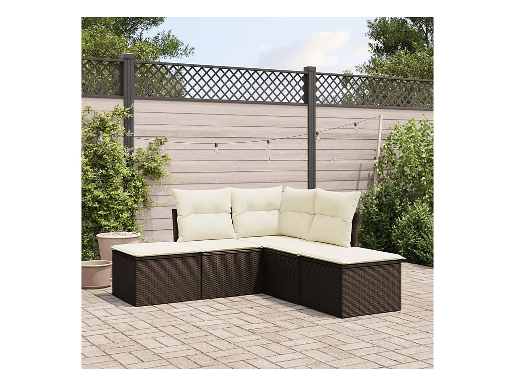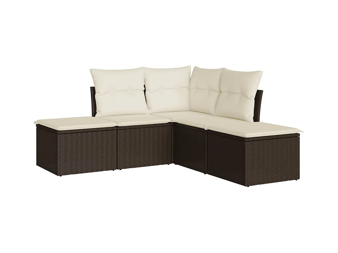 Salon de jardin 4 pcs avec coussins marron résine tressée