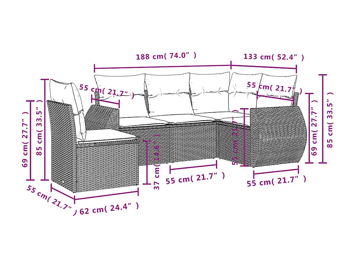 Salon de jardin avec coussins 5 pcs marron résine tressée