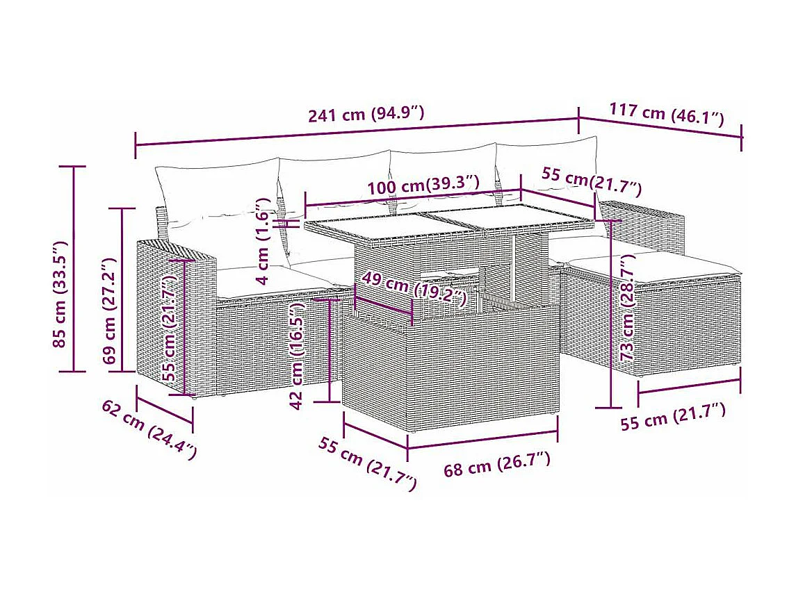 Salon complet de jardin Canapé 2 places et 2 fauteuils
