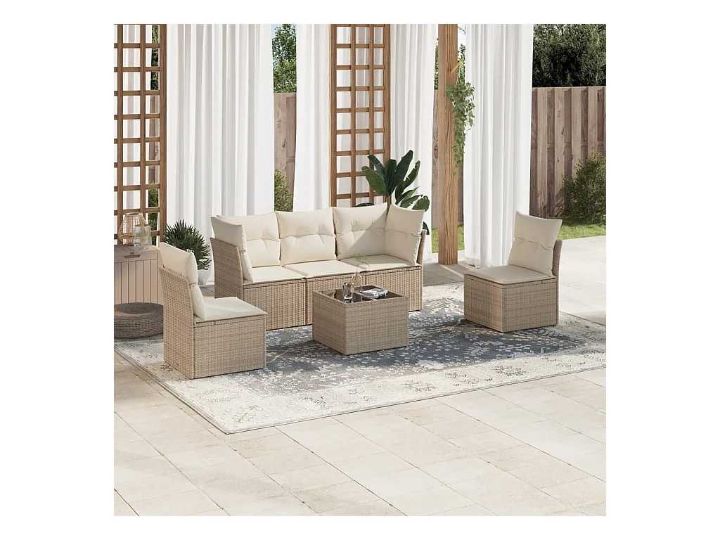 Salon de jardin avec coussins 7 pcs beige résine tressée