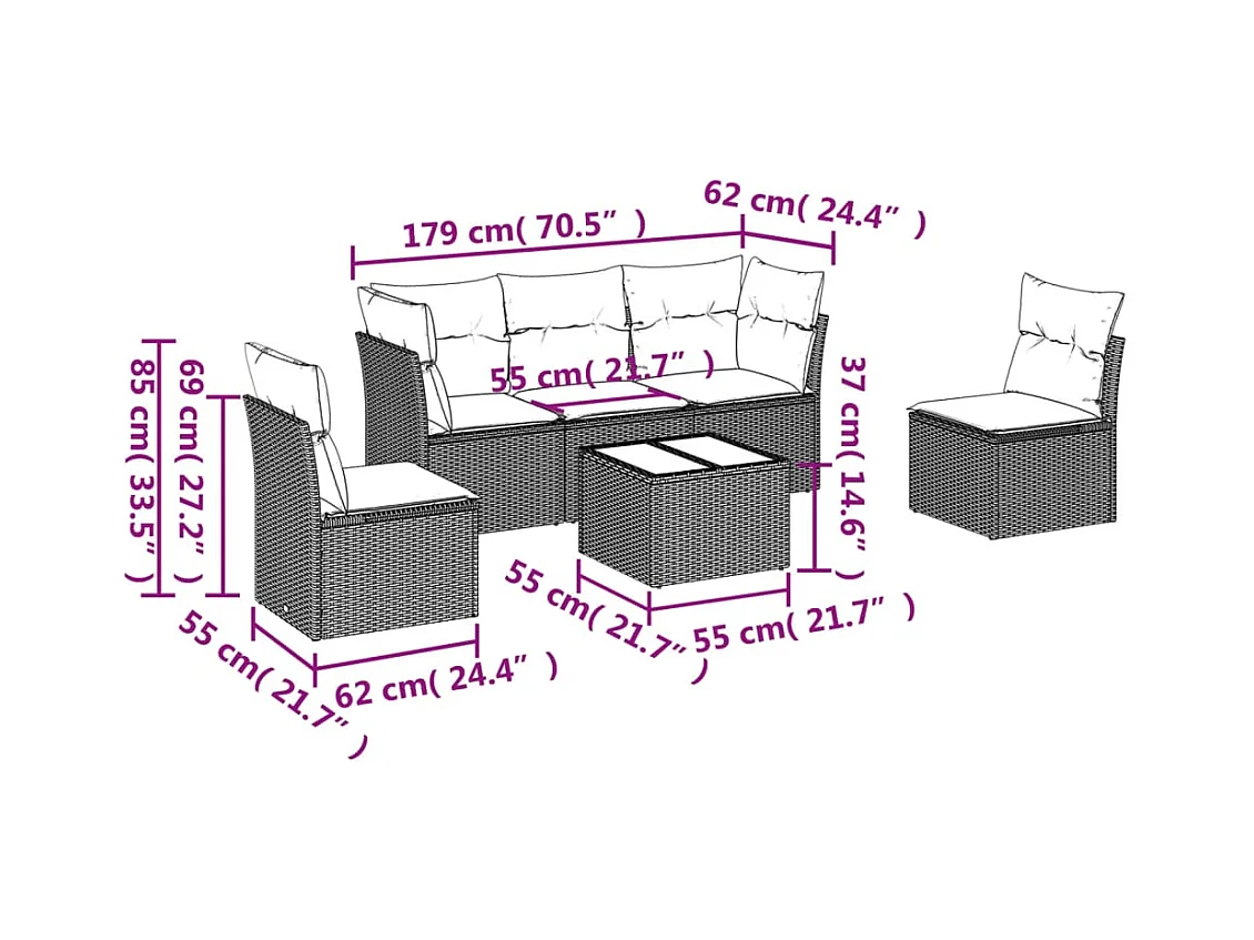 Salon complet de jardin Canapé 2 places et 2 fauteuils