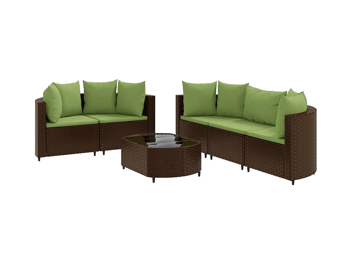 Salon de jardin 6 pcs avec coussins Marron Résine tressée