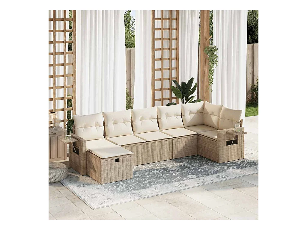 Salon de jardin avec coussins 7 pcs beige résine tressée