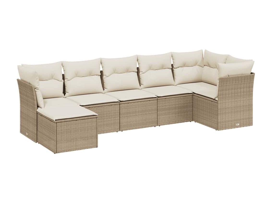 Salon de jardin avec coussins 7 pcs beige résine tressée