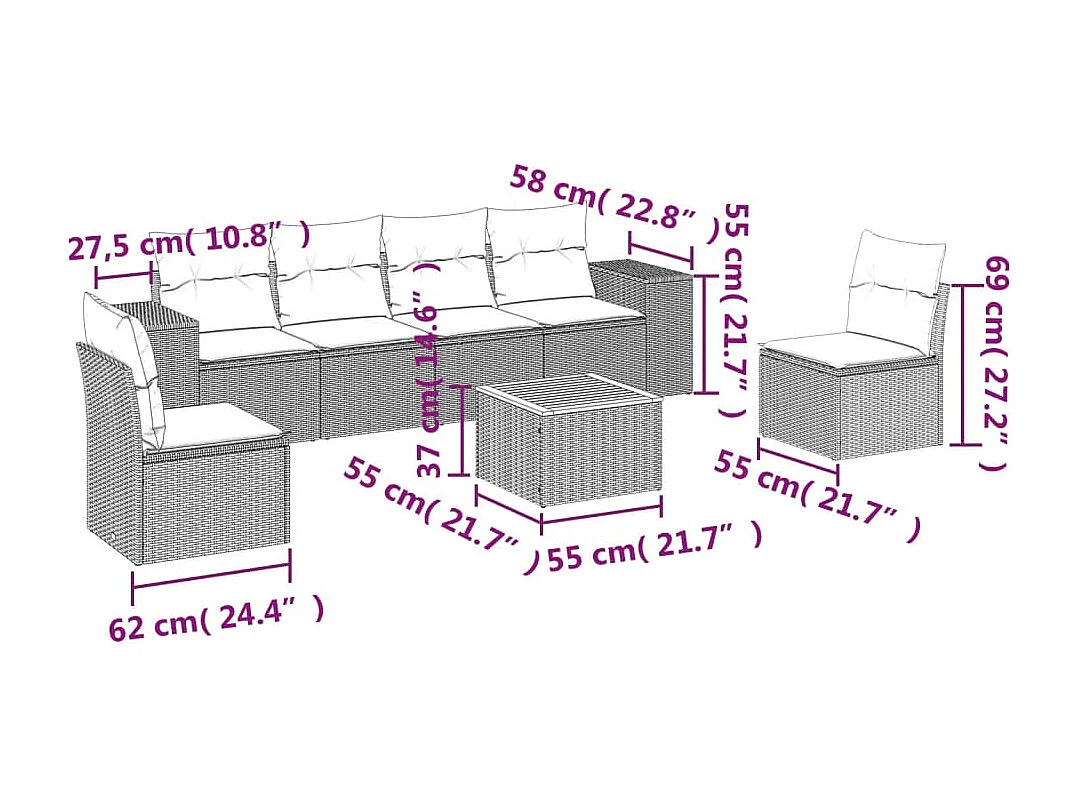 Salon de jardin avec coussins 7 pcs beige résine tressée