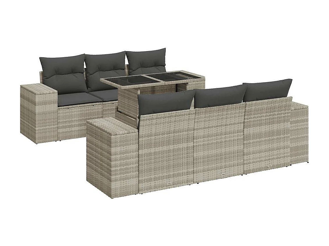 Salon de jardin avec coussins 7 pcs gris clair résine tressée