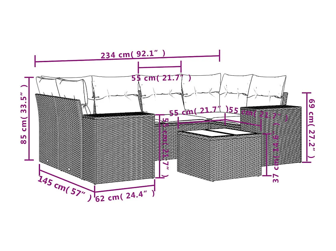 Salon de jardin 8 pcs avec coussins gris résine tressée
