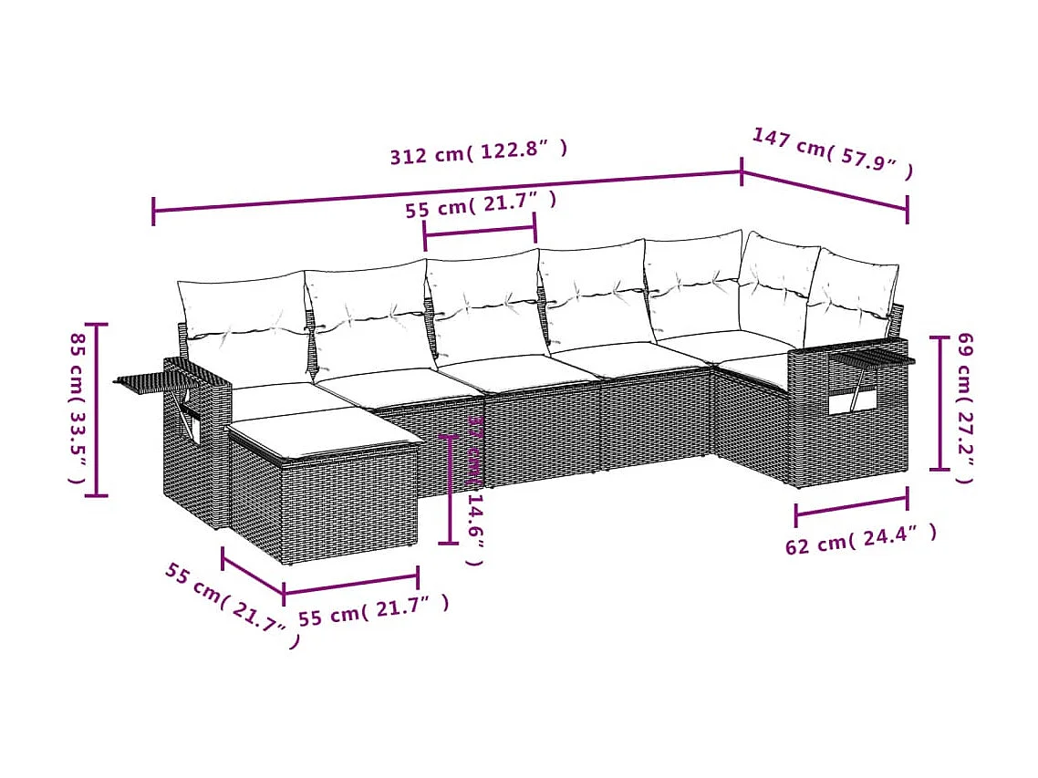 Salon de jardin avec coussins 6 pcs marron résine tressée