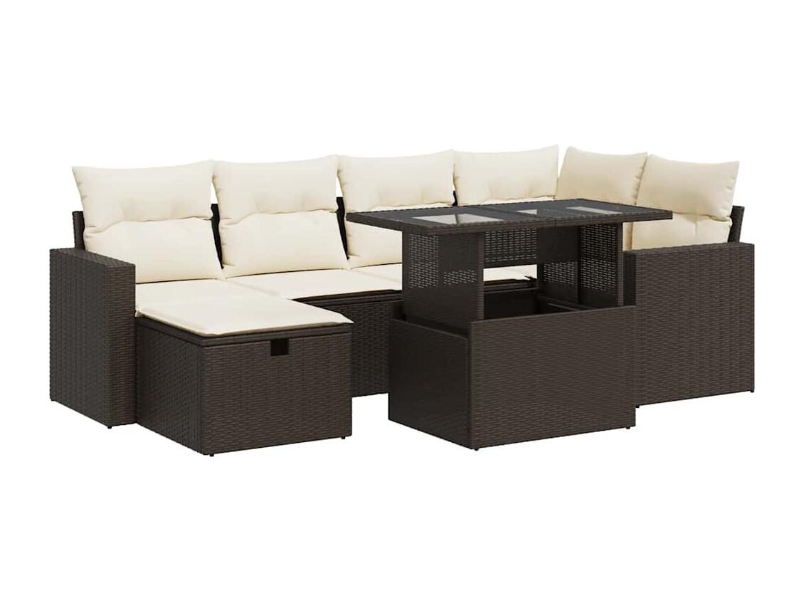 Salon de jardin avec coussins 7 pcs marron résine tressée